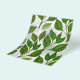Seamless pattern of green patterned tea leaves and sprouts on a light background. Tea design.