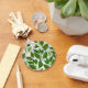 Seamless pattern of green patterned tea leaves and sprouts on a light background. Tea design.