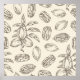 pecan, agriculture, illustration, seamless, art, background, branch of pecan, cooking, delicious, design, dessert, diet, drawing, drawn, dried, eating, element, food, hand, hand drawnvintage, retro, illustration,