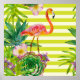 seamless pattern with pink flamingo and exotic tropical plants on a striped background. Watercolor hand-drawn illustration. Palm tree, succulent, roses, passionflower