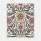 This blanket has flowers and leaves in shades of pink and blue on a cream-colored background.