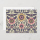 This postcard has flowers and leaves in shades of pink and blue on a cream-colored background.