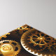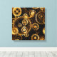 Seamless, metal, brass, gold gears on rusty dark background. Steampunk style.