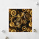 Seamless, metal, brass, gold gears on rusty dark background. Steampunk style.