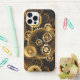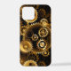 Seamless, metal, brass, gold gears on rusty dark background. Steampunk style.