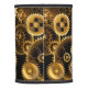 Seamless, metal, brass, gold gears on rusty dark background. Steampunk style.