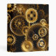Seamless, metal, brass, gold gears on rusty dark background. Steampunk style.