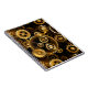 Seamless, metal, brass, gold gears on rusty dark background. Steampunk style.