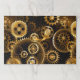 Seamless, metal, brass, gold gears on rusty dark background. Steampunk style.