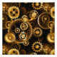 Seamless, metal, brass, gold gears on rusty dark background. Steampunk style.