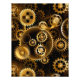 Seamless, metal, brass, gold gears on rusty dark background. Steampunk style.