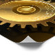 Seamless, metal, brass, gold gears on rusty dark background. Steampunk style.