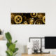 Seamless, metal, brass, gold gears on rusty dark background. Steampunk style.