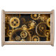 Seamless, metal, brass, gold gears on rusty dark background. Steampunk style.