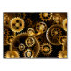 Seamless, metal, brass, gold gears on rusty dark background. Steampunk style.