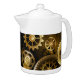 Seamless, metal, brass, gold gears on rusty dark background. Steampunk style.