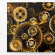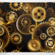 Seamless, metal, brass, gold gears on rusty dark background. Steampunk style.