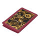 Seamless, metal, brass, gold gears on rusty dark background. Steampunk style.