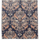 Seamless symmetrical pattern in the Damask style. Jumping hares,an ornament of plants in beige shades on a dark blue background.