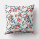 Seamless titmouse birds, winter snow branches, row throw pillow