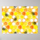 Seamless watercolor pattern with honeycombs and li poster