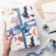Seamless Witch and Broom Wrapping Paper with Moon