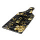 Seamless pattern with black and gold blooming orchids, richly decorated with black eucalyptus twigs and delicate jewelry pistachio twigs on black background. Golden jewelry Orchid.