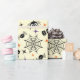 "Seamless Wrapping Paper: Spiders, Cobweb, and Boo!" is filled with spooky spider webs, crawling creatures, and chilling Halloween words like "boo," making it ideal for wrapping Halloween gifts.
