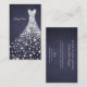 Stylish feminine simple elegant navy business card with a beautiful stylized white diamonds wedding dress on a plain midnight blue vintage chalkboard background with a simple chic calligraphy script. ++++++++++++++++ Brings a classy elegant look - suitable for wedding planners, fashion designers or wedding boutique owners.