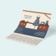 A flyer with tear off strips and illustration of a sewing workshop including a blue dress with floral patterns, a sewing machine, a mannequin and a wooden worktop all in a warm hue. Perfect for activities such as seamstress, tailor, dressmaker, alterations, repairs, fashion designer, handmade sewing, etc.