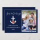 Seas and Greetings Poinsettia Anchor Photo Blue Holiday Card