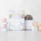 Beautiful pastel colors make up this lovely matte wrapping paper featuring the words "Seas and Greetings" that are adorned with seashells and coral, and a pretty holiday candle on a pale blue background.