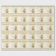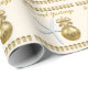 Seas and greetings custom starfish Christmas wrapping paper on a roll. Gold and white with a line of text that can be changed, this quality gift wrap is light beige with gold design. Festive gold Christmas tree ornaments and a white starfish make up this unique holiday design meant for those who celebrate in the tropics. Choose a paper type and roll length.