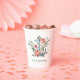 Festive holiday paper cups for coastal dwellers, beach or boat Christmas parties features the quote "seas and greetings" beneath a watercolor illustration of a ship's anchor adorned with poinsettia flowers, red starfish and colorful Christmas greenery.