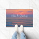 This custom doormat is designed with an image of a pastel-colored sunrise over Corolla Beach in North Carolina's Outer Banks. "Seas & Greetings" is added in large, easy-to-read lettering. The mat measures 24" x 36", and it has a smooth felt front & nonslip latex back. It also has a reinforced edge to resist fraying, is both fade & mildew resistant, and cleans easily with a spray of water. Ideal for covered entryways such as porches, apartments, offices, condos, etc. Feel free to contact me through Zazzle if you have questions about this mat or would like help transferring this design to a different item. I'm happy to help to ensure the image and lettering fit correctly.
