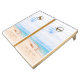 Natural Wood Cornhole Set, Royal Blue and Yellow bags