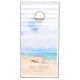 "Seas the Day" quote in beach sand with captivating watercolor of beached fishing boat on a sandy beach. Aqua blue ocean with sunny sky above with white sport lines.