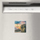 A custom refrigerator magnet with a beach background and inspirational quote.