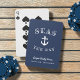 Ahoy! Set sail with our punny nautical playing cards featuring "seas the day" in white lettering curving around a ship's anchor illustration. Personalize with your family name and/or event type, and the date and destination beneath, to create a unique souvenir for family vacations, trips or cruises.