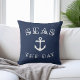 Dress up your beach house, coastal home or boat with this cheeky nautical throw pillow in classic navy and white. Punny design features "seas the day" in white lettering curving around a ship's anchor illustration.