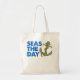 Seas The Day cool tote bag. Great for any boat lover! It features a cartoon anchor. A funny play on words for anyone who loves to be around water!