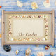 A border of sea shells on beach sand. Inside the border, the beach sand is faded. Add your own name, or any special text, for a custom personalized touch.