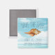 Save the date fridge magnets for your upcoming beach wedding in a cute seashell design. These save the dates are just perfect for a beach, coastal, tropical or island wedding. Customize with your names, wedding date and location.
