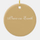Lightweight, smooth, pure white ornament with nice sheen. Perfect size to be seen from across the room ... and to attract closer inspection! Price was great for ordering enough for the whole family! Clear, bold black design just as requested. Matches the order exactly. Just so nice!