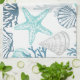 Seashell Starfish Pattern Blue And Teal Kitchen Towel