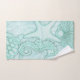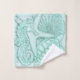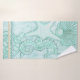 This beautiful watercolor-effect design features large images of a clam shell, starfish, seahorse and turtle on a textured background. This version is in shades of aqua with on optional rope-style border in both aqua and sandy gold that adds an elegant trim to the bath towel. Border may be deleted or copy any paste to change to both the same color. Search ID751 to see color options and other products with this design.