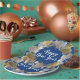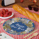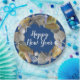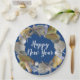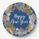 Custom beach themed paper plates to use for any occasion. Dark blue with pretty seashell wreath around the edge and modern script font in the center. Sample text is "Happy New Year" and can easily be changed for a birthday, graduation, wedding shower, or summer event.