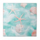 A serene coastal pattern ceramic tile featuring swirling turquoise waves, shimmering seashells, and starfish for a breezy ocean aesthetic. The design blends soft pastels with flowing wave textures, creating a dreamy beach-inspired look. Ideal for ocean lovers, summer décor fans, beach-themed gifts, and anyone who adores coastal style.