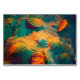 Artistic image of some scalloped seashells on a sandy beach. The seashells and sand are colored a vibrant teal green and rusty orange. Lovely textures and lighting. A delightfully soft and glowing image. Great for beach lovers.