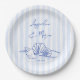 Seashells blue wavy border beach wedding monogram paper plates